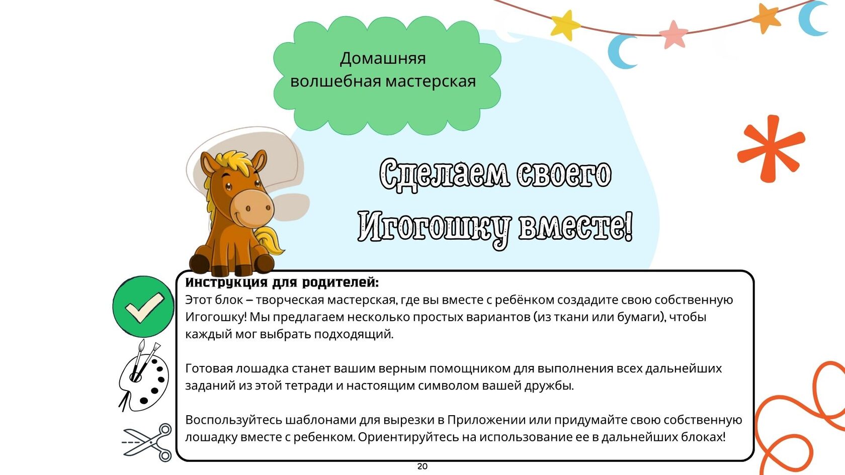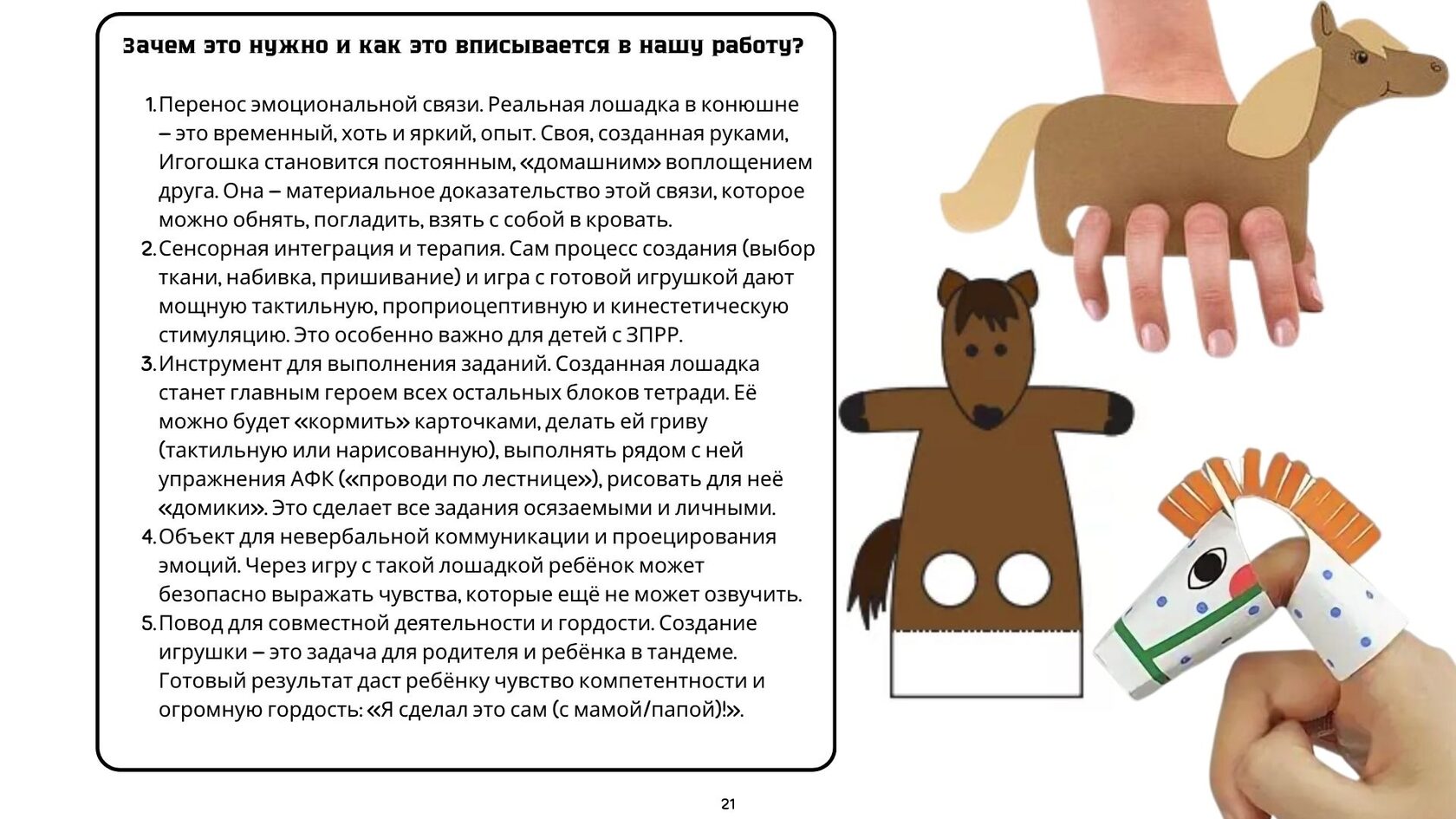 В нашей рабочей тетради есть отдельный блок по изготовлению игрушки и использованию ее в работе с ребенком